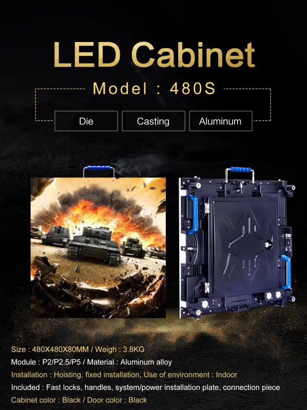 | Physical pixel:2㎜ | module size:128X128㎜ | cabinet size:480×480×75(mm) | ||||||